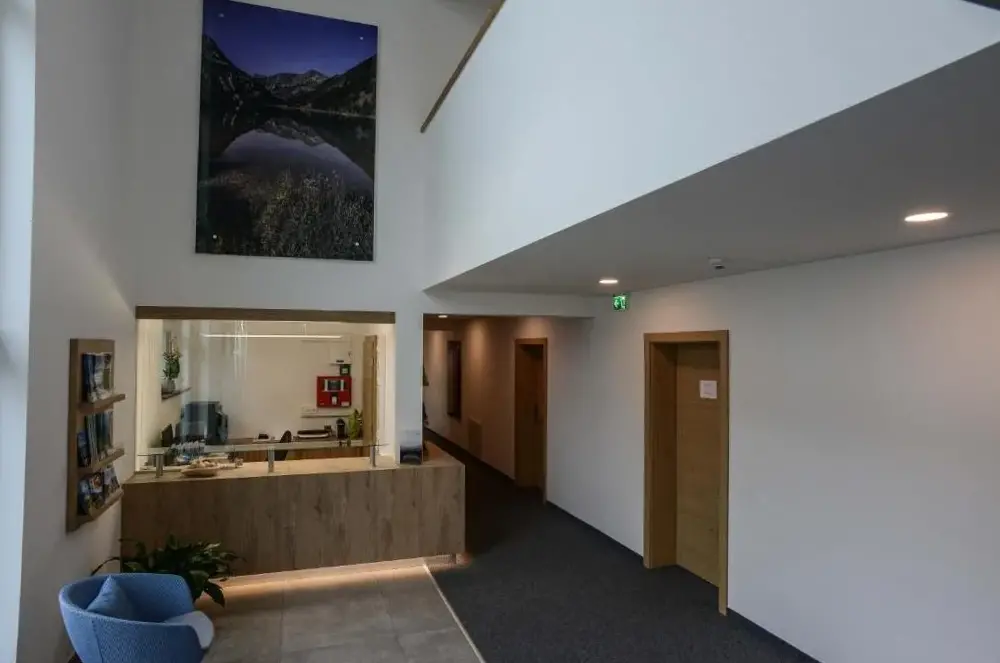 Das schöne neue Haus liegt ruhig am Ortsrand. Dennoch ist man in 5 Minuten mitten im Ort. Das Appartement war geschmackvoll und gemütlich eingerichtet und mit allem ausgestattet, was man für einen schönen Urlaub braucht. Die Damen an der Rezeption waren sehr freundlich und hilfsbereit. Alles super!